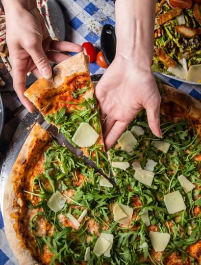 bold flavors, golden thin-crust